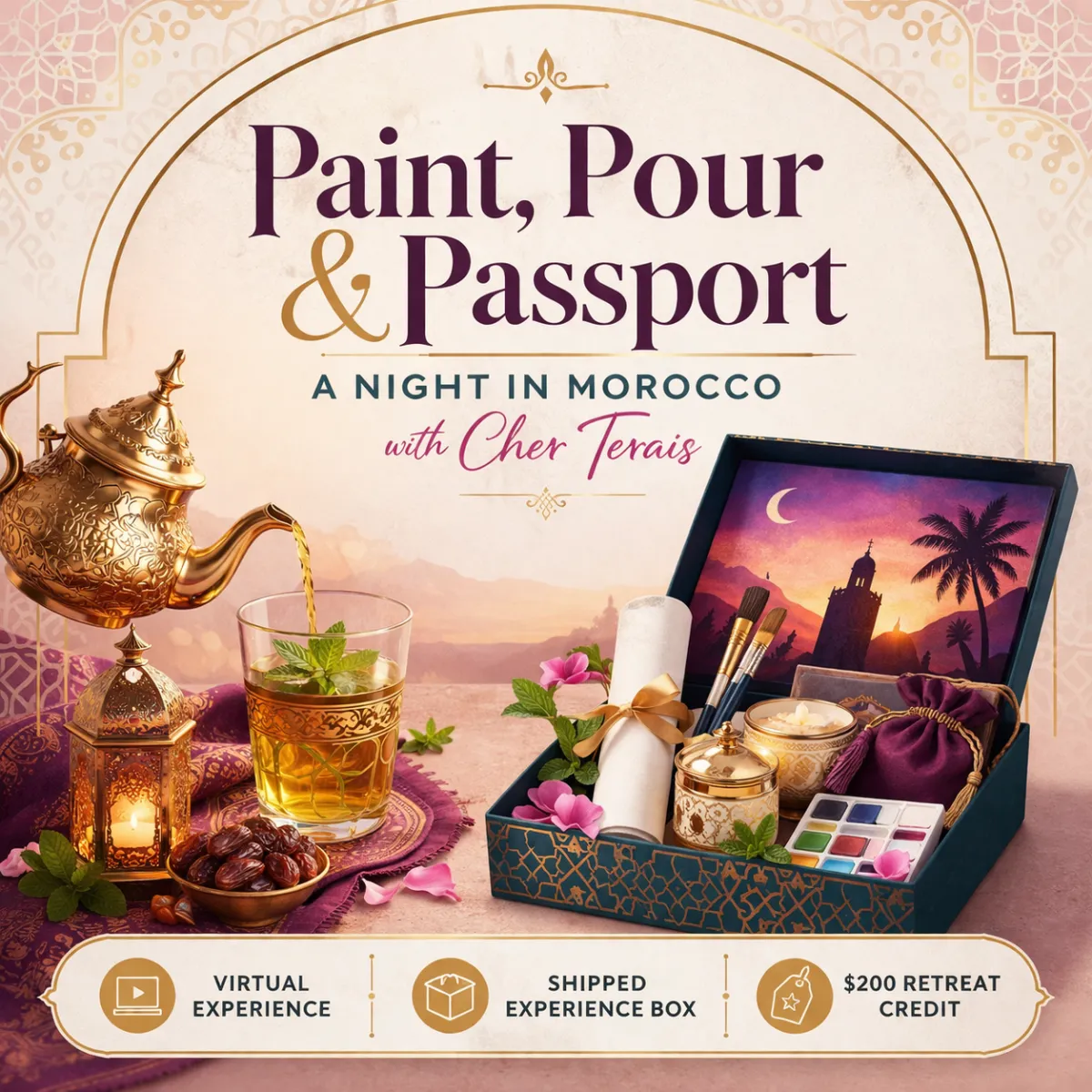 A beautifully curated virtual evening of Moroccan-inspired tea, creativity, culture, and connection — delivered to your door.